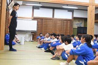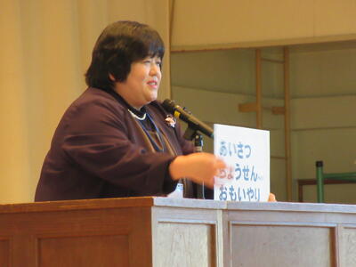 また、校長先生からは、本校の学校経営の基本方針である「あいさつ」「挑戦(チャレンジ)」「思いやり」「夢・目標」についてのお話がありました。