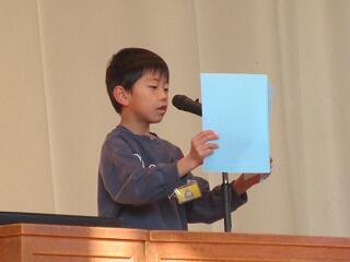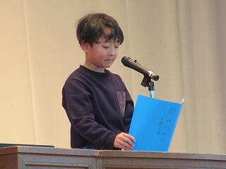 終業式では、3年生と4年生の代表が、2学期の振り返りを発表しました。