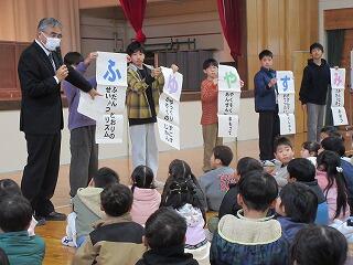 生徒指導主事の先生と6年生で、冬休みに気をつけることの確認をしました。