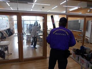 今回の不審者役は、日立警察署生活安全課のスクールサポーターさんにお願いしました。警察官のOBであり、迫真の演技です。