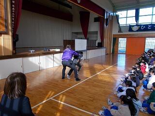 訓練終了後の安全講習では、登下校時に不審者が現れたときの対応について学びました。