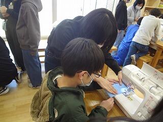 5年生の家庭科で、ミシンの使い方を学習しました。
